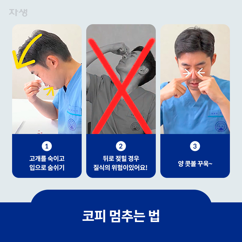 코피가 반복적으로 나거나 출혈향이 상당한 경우에는 병원에서 치료를 받아야 하는 경우도 있습니다.